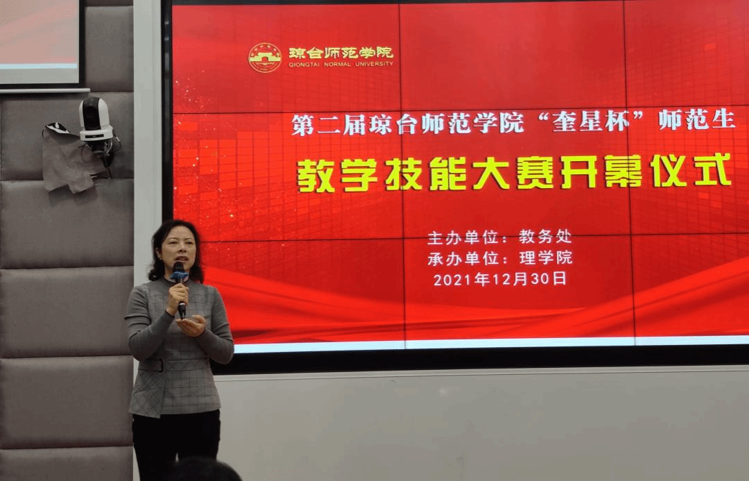 大赛开幕式在实D102举行,各二级学院分管教学的副院长、师范专业系主任、实习指导老师、全体参赛学生以及部分师生代表参加了开幕式。