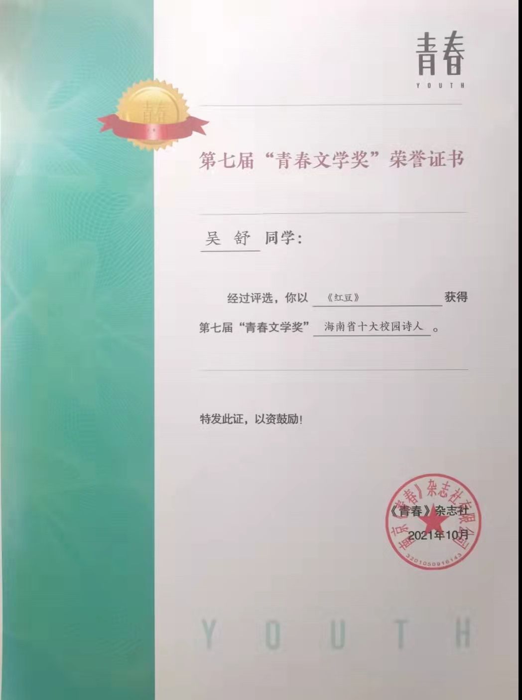 基础写作课程教学成果学生作品获奖照片